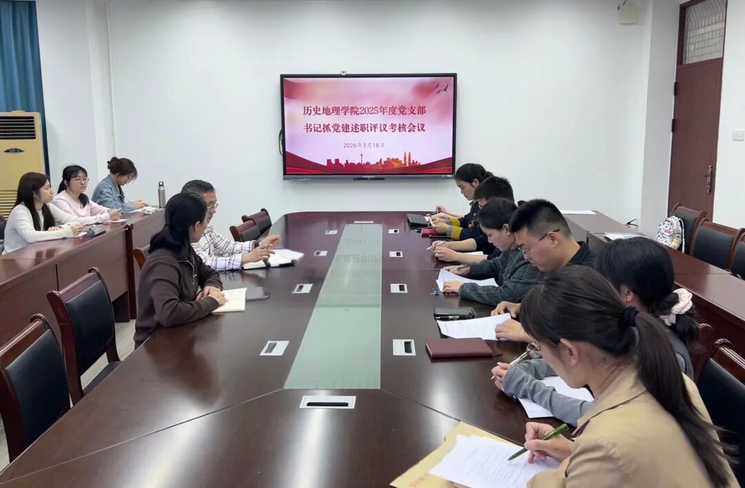 3月18日下午,历史地理学院在综合楼中区309会议室召开2025年度党支部书记抓基层党建工作述职评议考核会议。学院党委副书记(主持党委工作)胡海智、党委副书记邱文芳、党支部书记、师生党员代表参加会议。